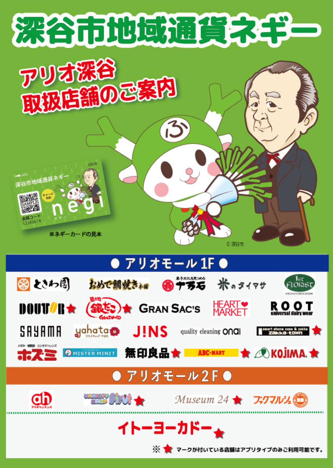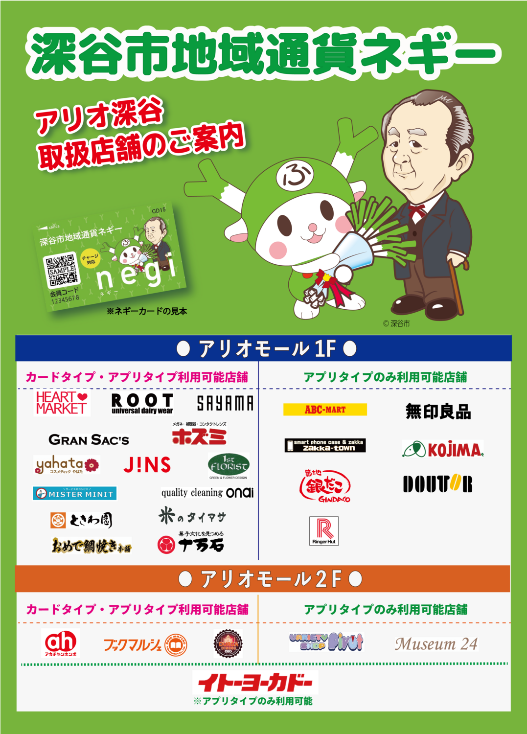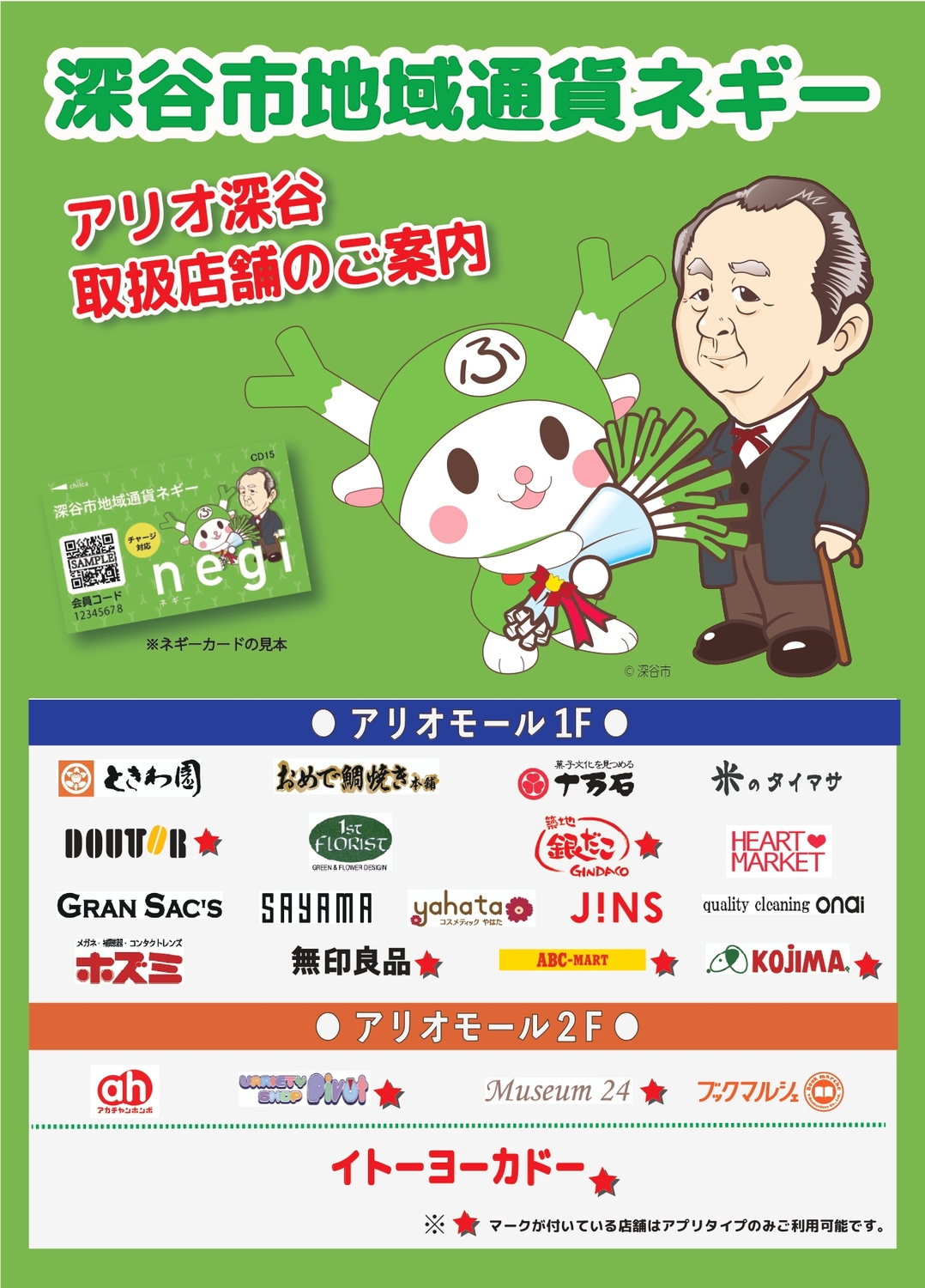 「深谷市地域通貨ネギー」取扱店舗のご案内