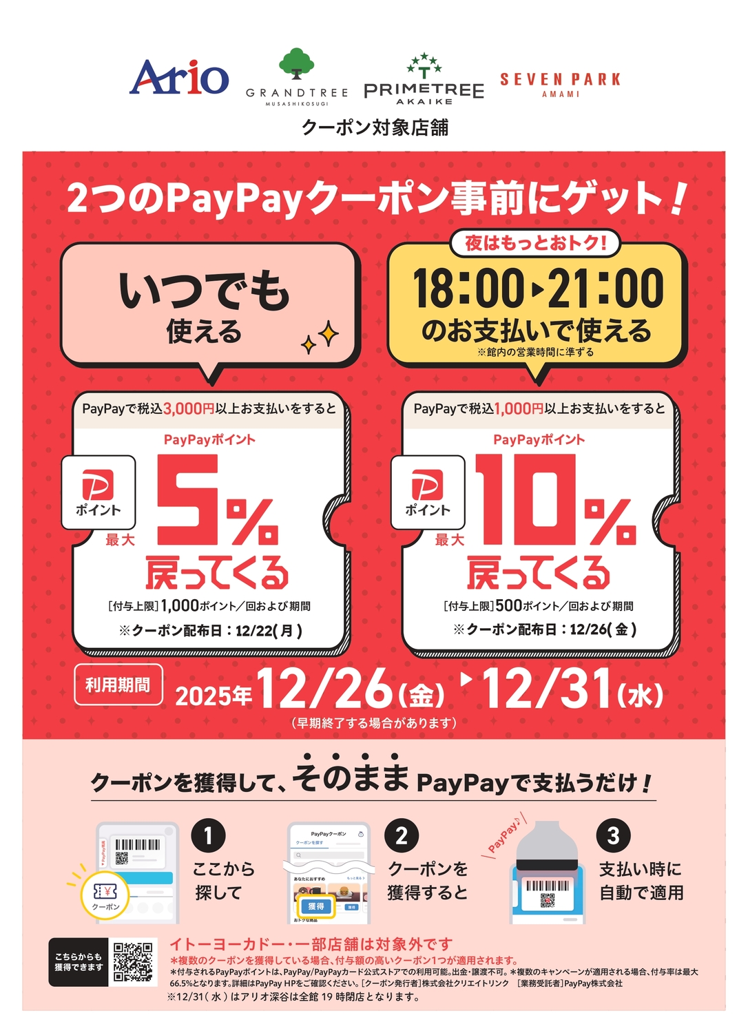 アリオ深谷でお得に買い物しよう!昼も夜もお得!限定クーポン配布!