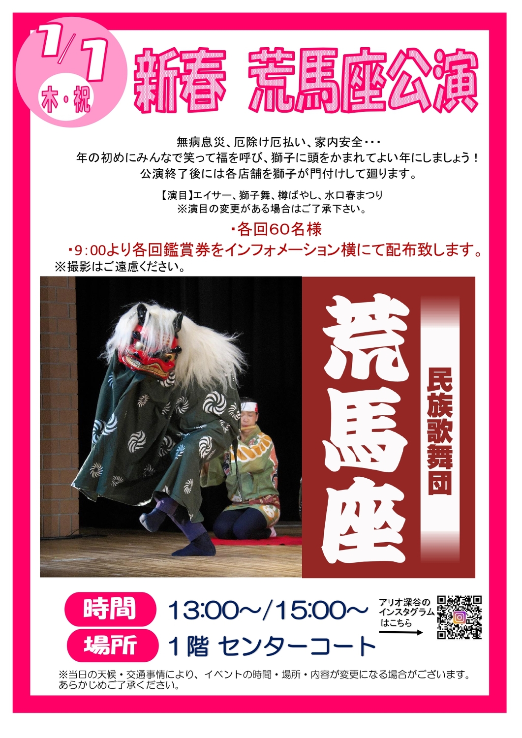 ※当日の天候・交通事情により、イベントの時間・場所・内容が変更になる場合がございます。あらかじめご了承ください。