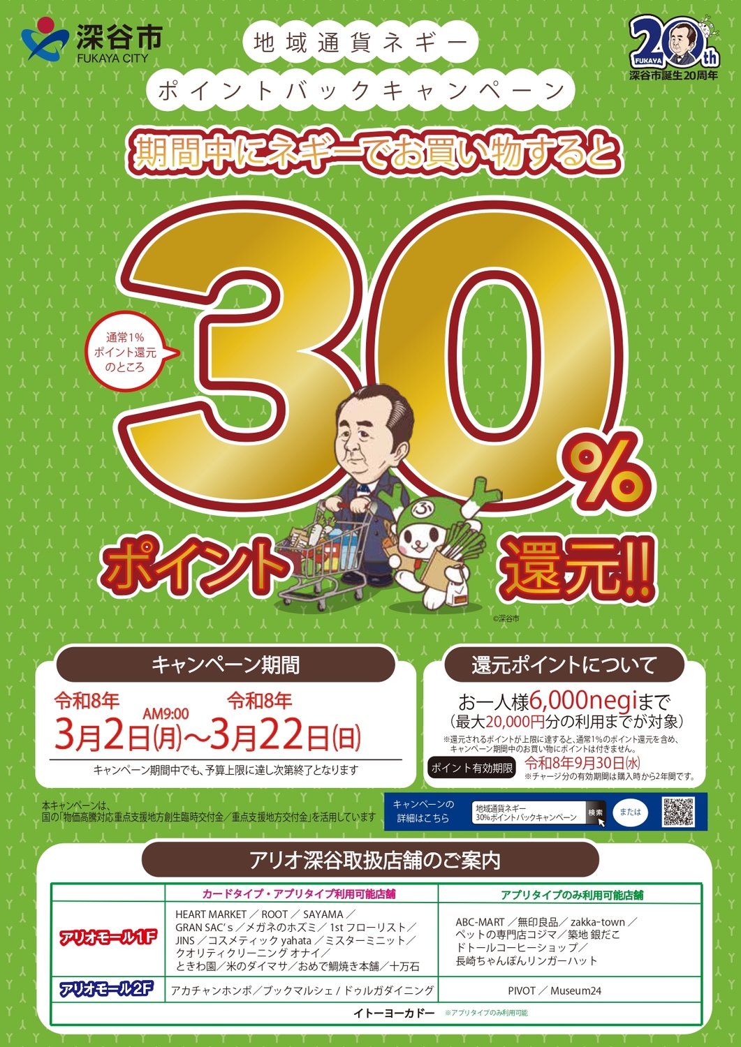 地域通貨ネギー ポイントバックキャンペーン 期間中ネギーでお買物すると30%ポイント還元