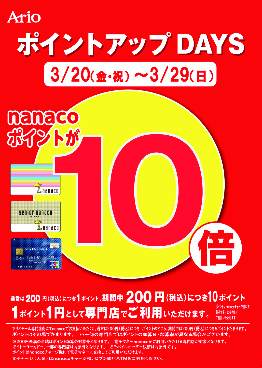 アリオモール専門店街特別企画 nanacoポイントアップDAYS nanacoポイント10倍