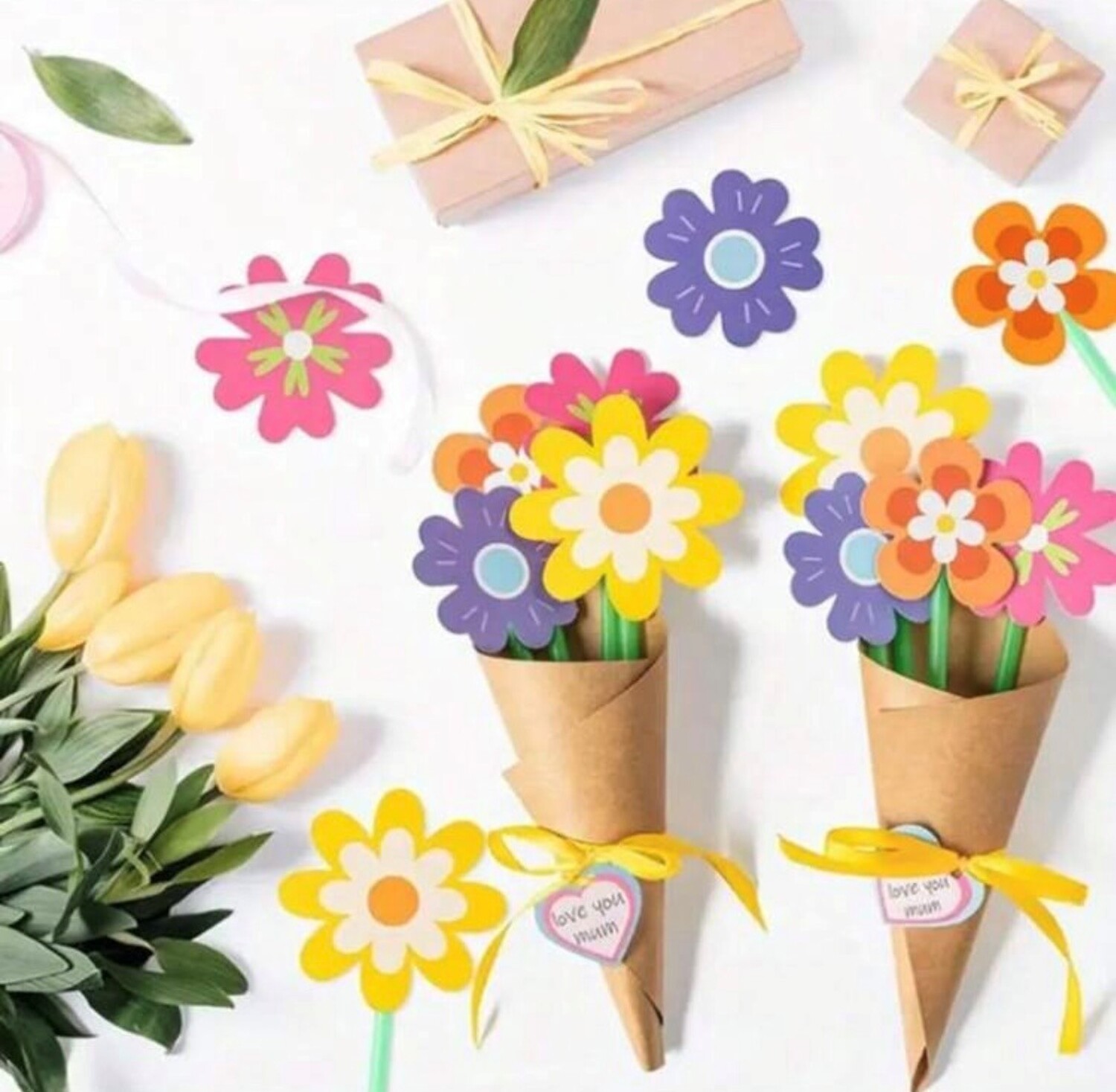 カラフルな紙でフラワーブーケをつくろう!!