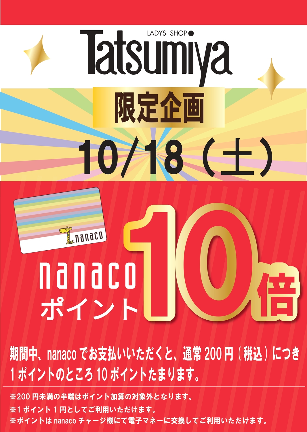 10/18(土) Tatsumiya 限定企画 nanaco10倍