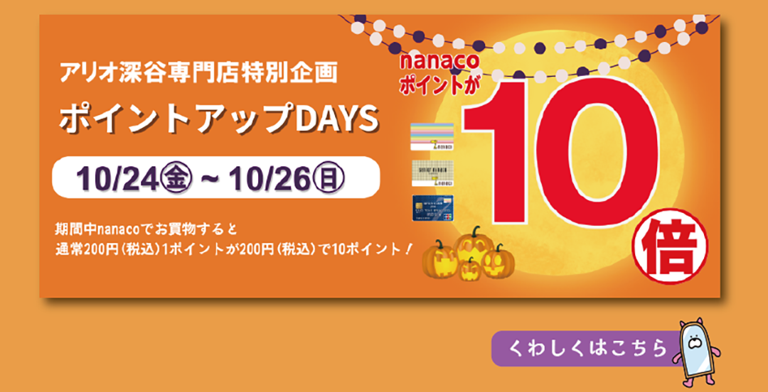 アリオモール専門店街特別企画 nanacoポイントアップDAYS nanacoポイント10倍