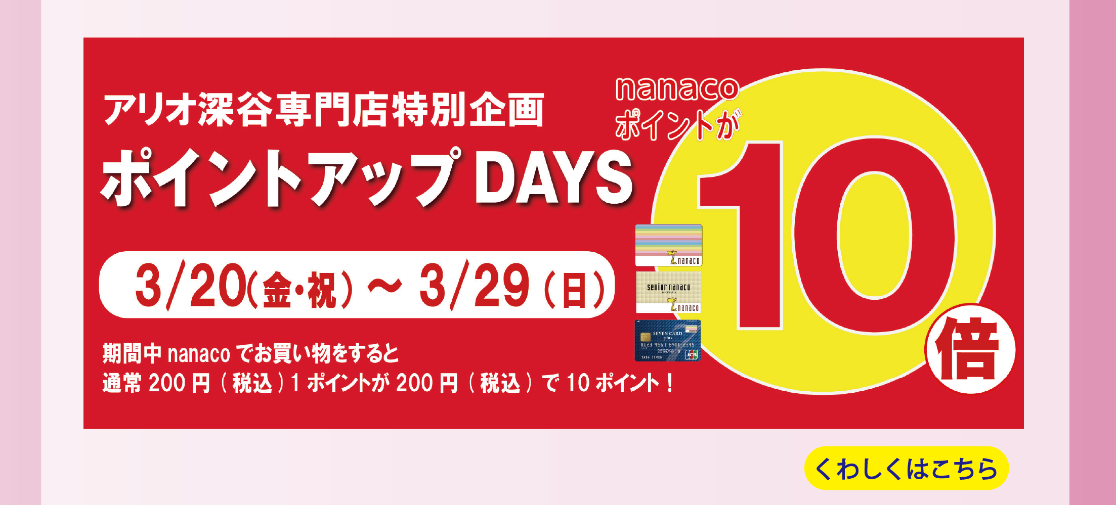 アリオモール専門店街特別企画 nanacoポイントアップDAYS nanacoポイント10倍